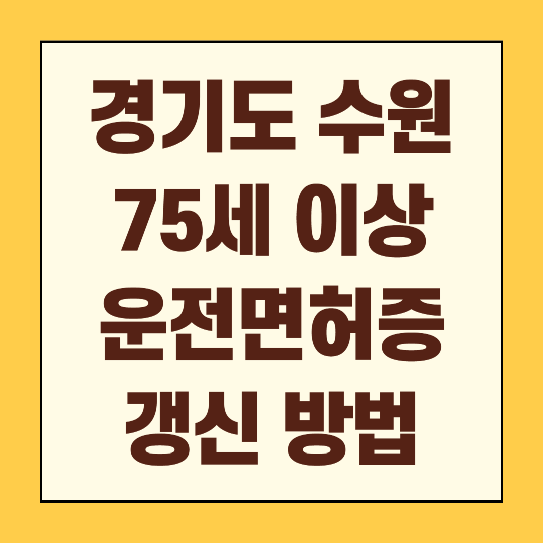 2019년 1월 1일부터 도로교통법이 개정되면서 75세 이상 고령운전자의 면허 갱신 절차가 변경되었습니다. 수원에 거시 중인 어르신! 갱신 기간 만료 전에 늦지 않게 지금 바로 신청하세요!. 갱신 기간이 경과하면 과태료 부과뿐만 아니라 면허가 취소될 수도 있습니다.