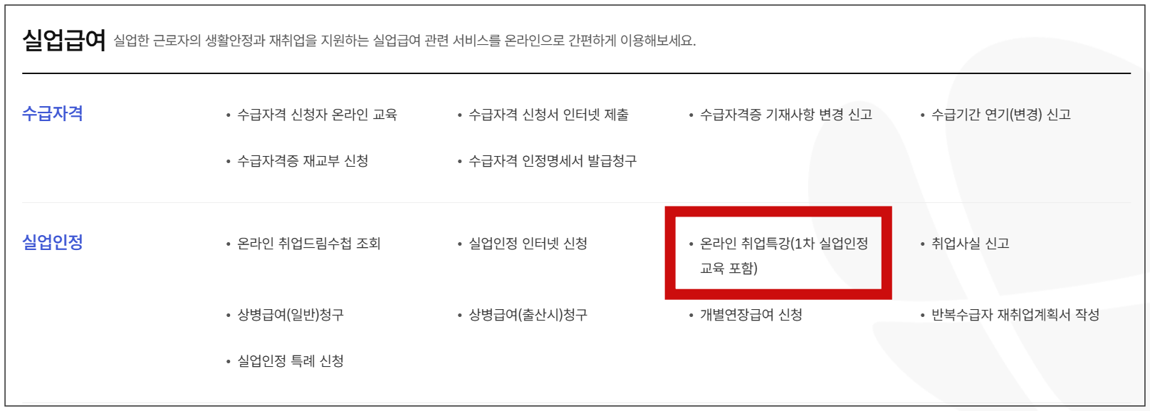 - '실업인정' 메뉴 선택